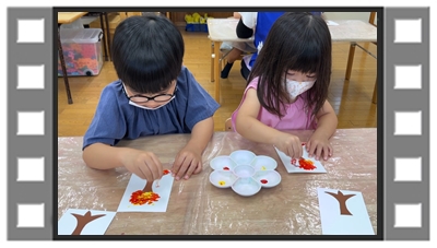 虹組・・・それぞれが思い描いている木を綿棒を使て表現しました。